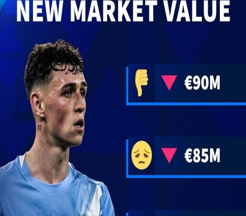德转预热福登最新身价:四个选项均为跌幅,最低身价仅75M