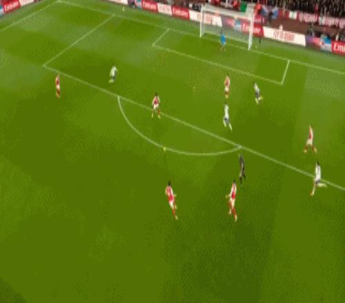 比赛的第36分钟,梅里诺挑传,特罗萨德后插上停球转身之后扫射,球打在范德文的脚上变线入网,阿森纳艰难地打破了僵局。